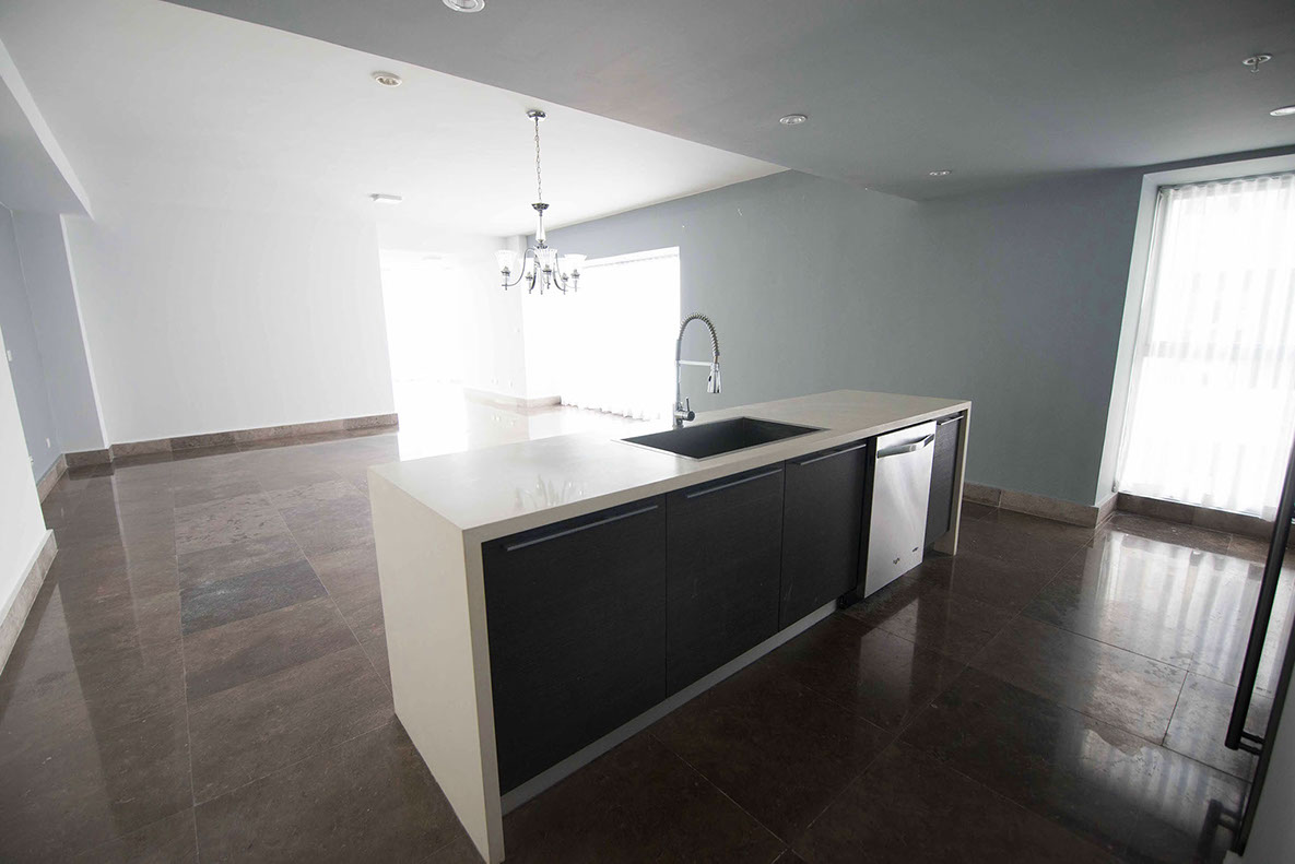 Loft residence with ocean view equipped with household appliances.